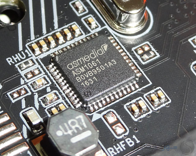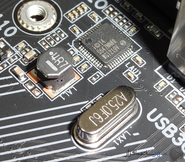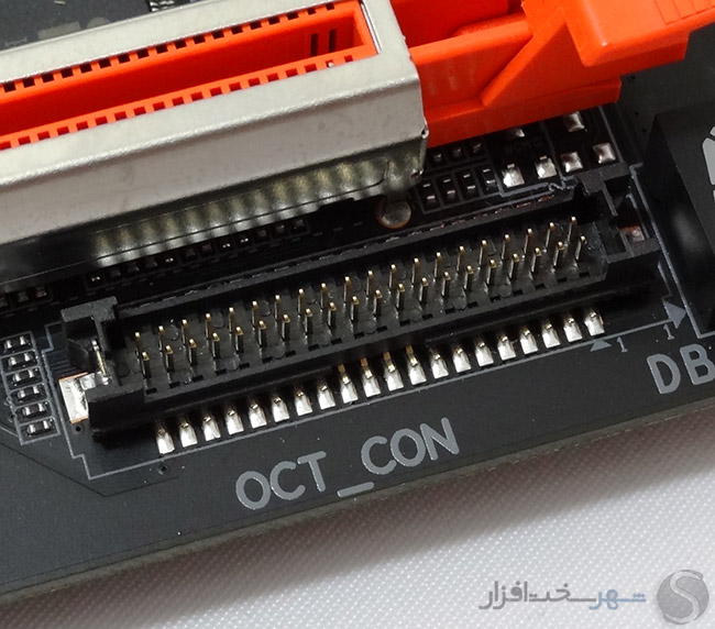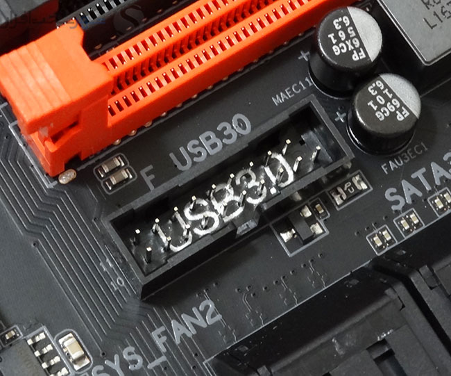 همچنین در کنار پورتهای SATA یک کانکتور 19 پین USB 3.0 منشعب شده از چیپست PCH Intel Z270 تعبیه شده است که روی هم رفته 2 پورت USB 3.0 جهت اتصال به پنل جلویی کیس و یا براکت های جانبی فراهم میکند.