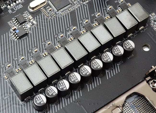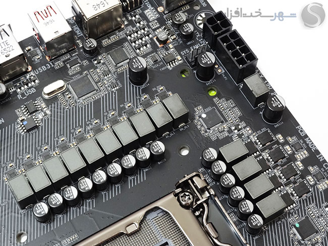 - مجهز به مدار رگولاتور ولتاژ بسیار قدرتمند و مدرن جهت تغذیه پردازنده و ماژولهای حافظه RAM