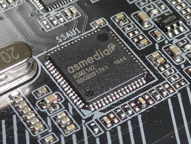 علاوه بر این همانطور که اشاره شد 2 عدد از پورتهای USB 3.0 این پنل که با رنگ زرد از سایر پورتها متمایز شدهاند به همراه پورتهای USB 3.0 ارائه شده توسط کانکتورهای تعبیه شده بر روی PCB دارای تغذیه با ولتاژ 5v تقویت شده با قابلیت تنظیم دستی ولتاژ (حداکثر +0.2V بیشتر از مقدار نامی) هستند و حتی در جریانهای بالا نیز دچار افت ولتاژ و نویز نمیشوند. این قابلیت که کمپانی سازنده آن را USB DAC-UP 2 نامیده است برای اتصال دستگاههای پرمصرف و مبدلهای Digital-to-Analog صوتی کاربرد دارد و در عمل باعث تثبیت هر چه بیشتر ولتاژ و افزایش کیفیت ادوات صوتی نامبرده خواهد شد. علاوه بر این مشکلات ناشی از قطع وصل کیبورد و ماوس با سیمهای بلند نیز در این مادربرد وجود نخواهد داشت.