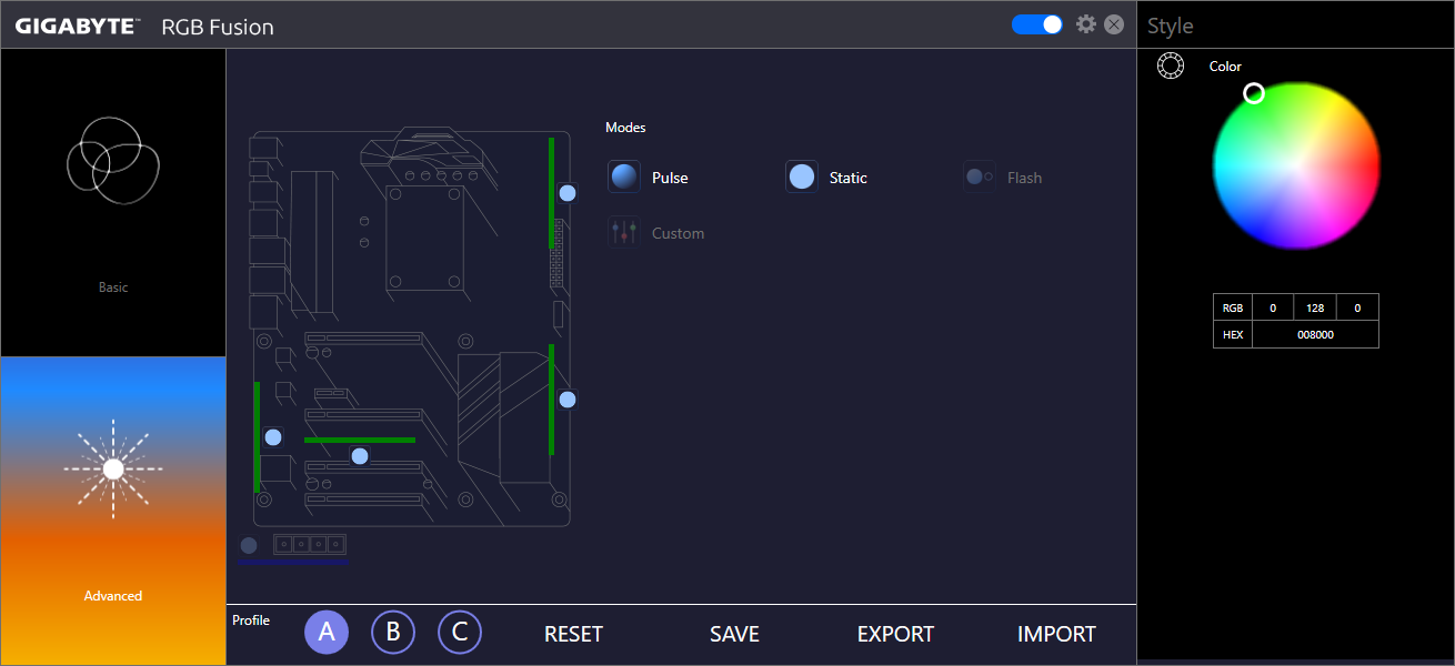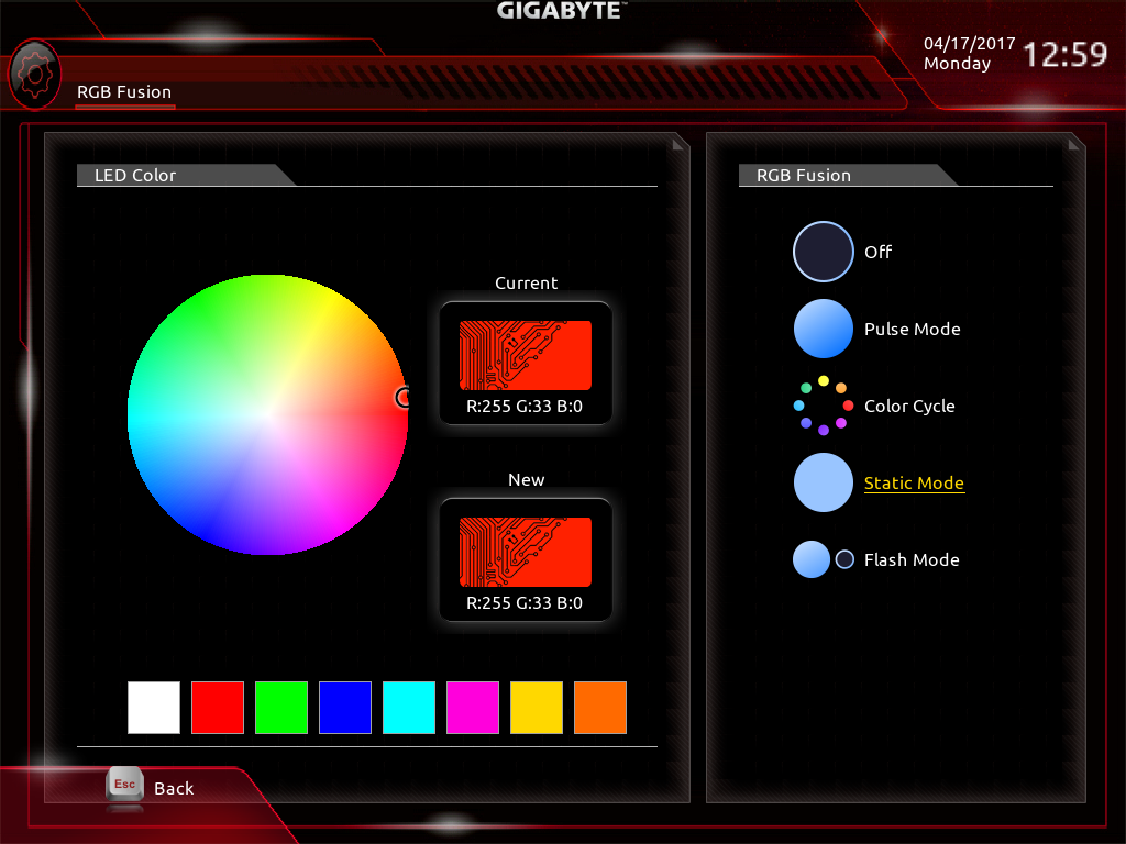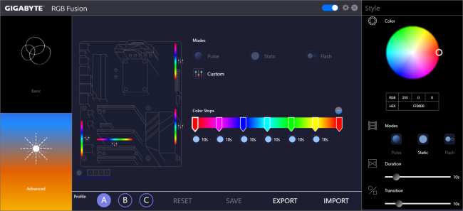 یکی از دیگر قابلیتهای بینظیر این سیستم نورپردازی امکان تعیین بازه زمانی برای رنگهای قابل نمایش توسط هر بخش از دیودهای RGB تعبیه شده بر روی این مادربرد است.