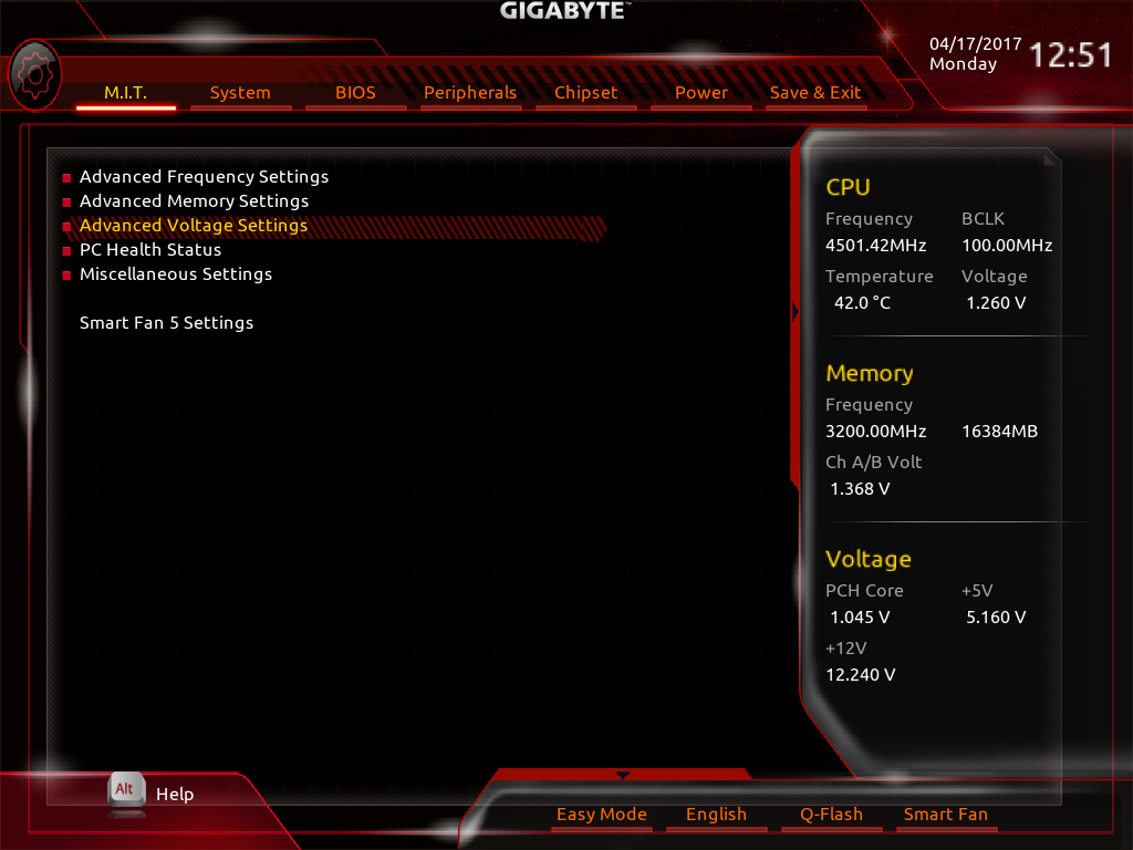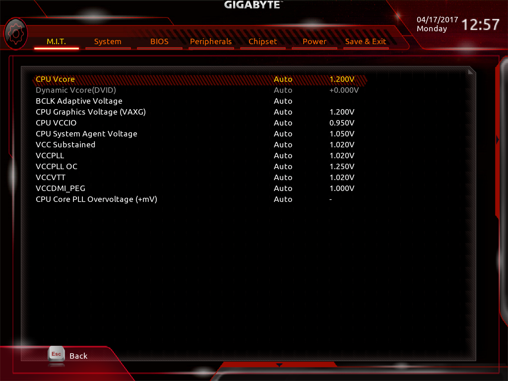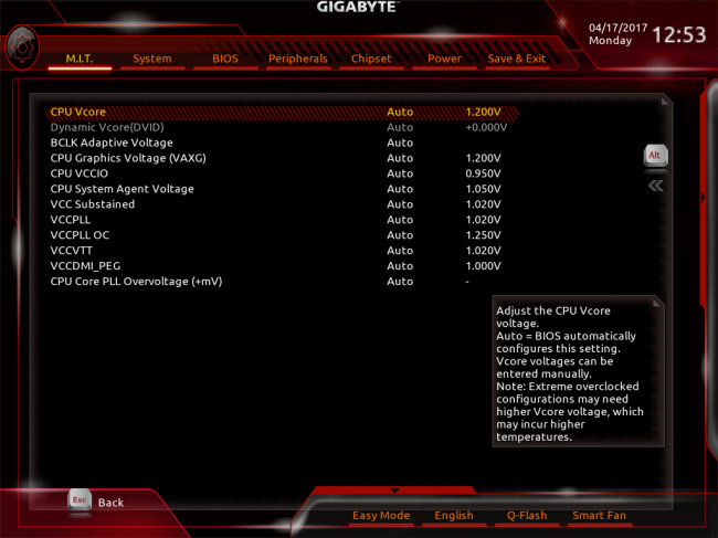 در تب Advanced CPU OC همچنان که در تصویر بالا مشخص است قابلیت تغییر فرکانس BCLK، ضریب فرکانس هر هسته پردازنده بهصورت مجزا و پارامترهای مختلف ولتاژ بهصورت آنی و Real Time فراهم شده است.