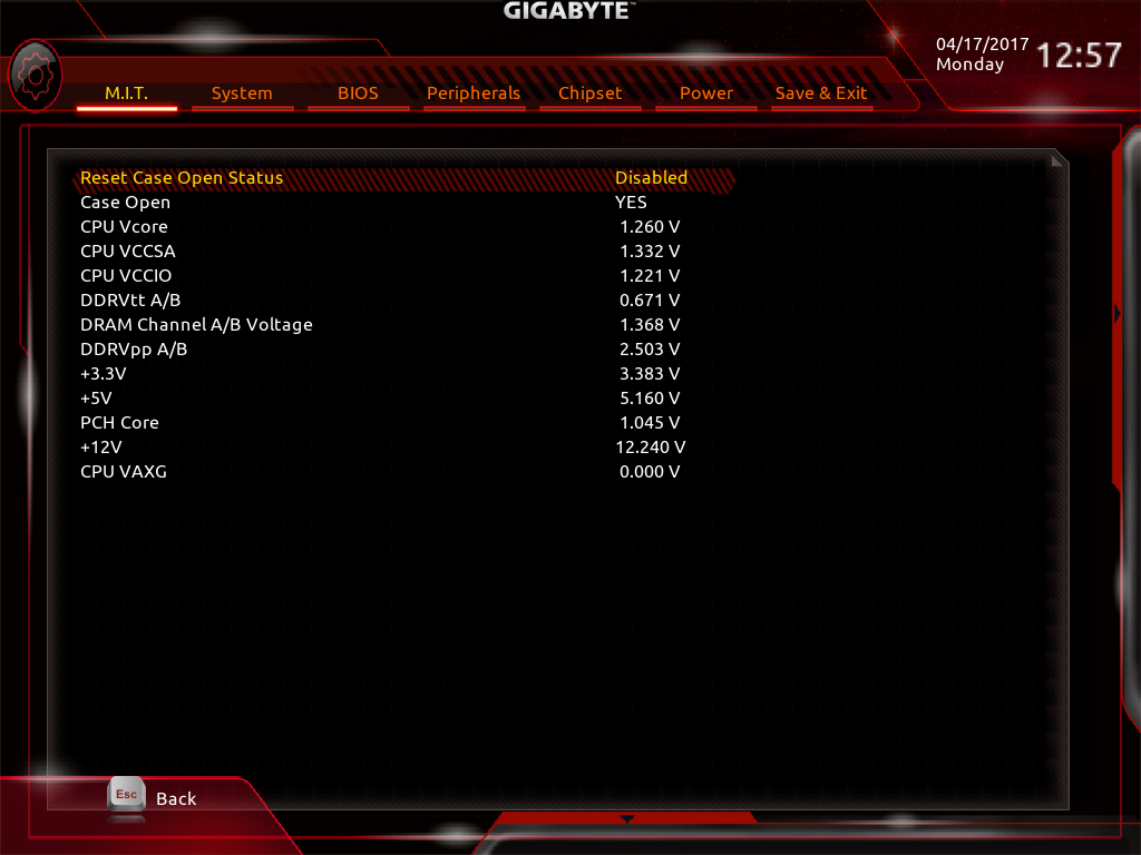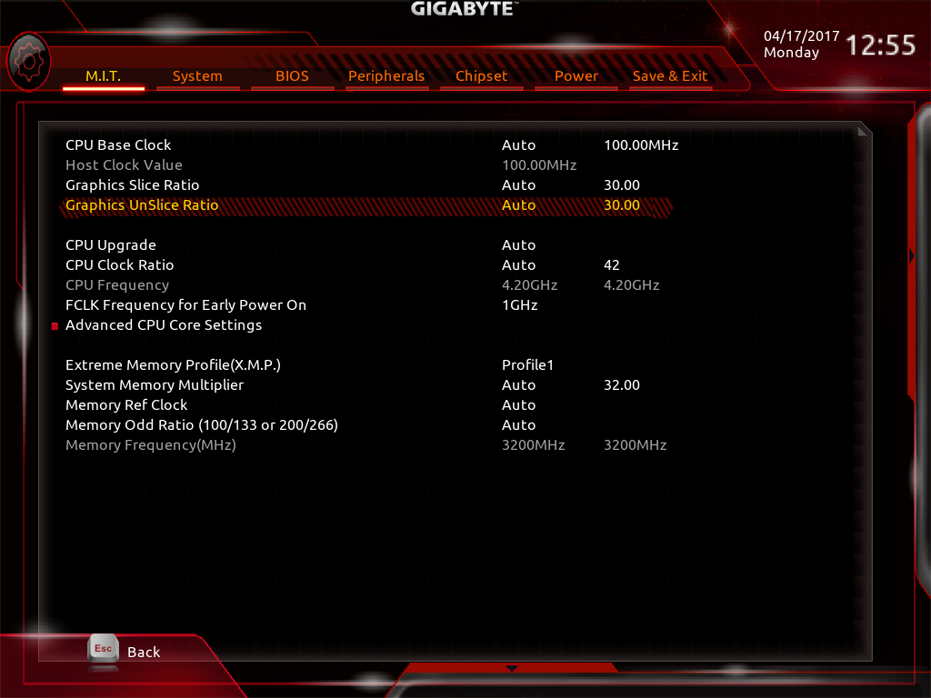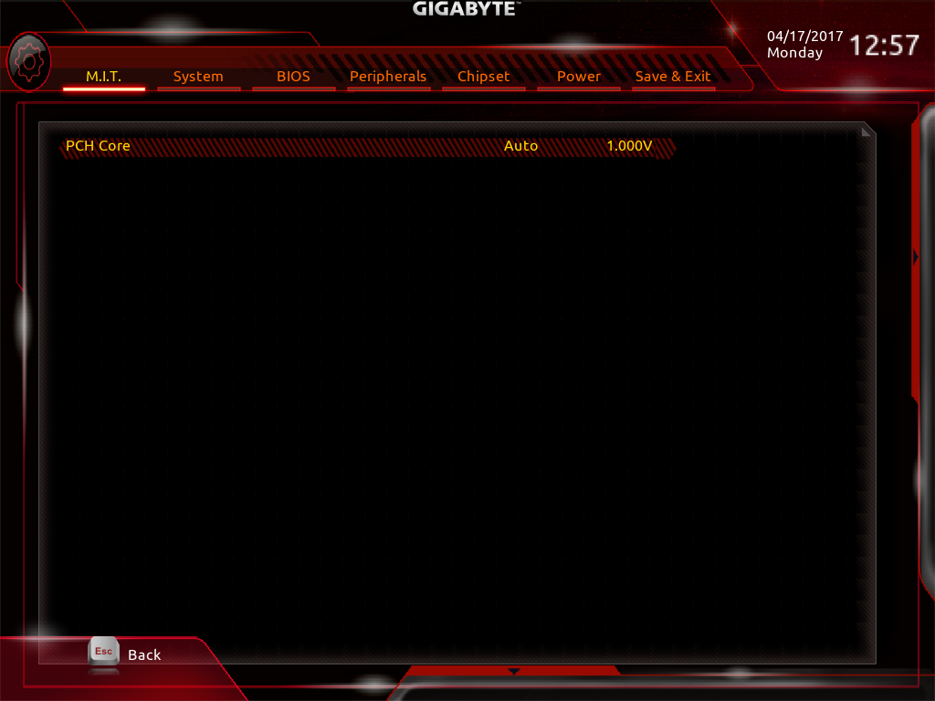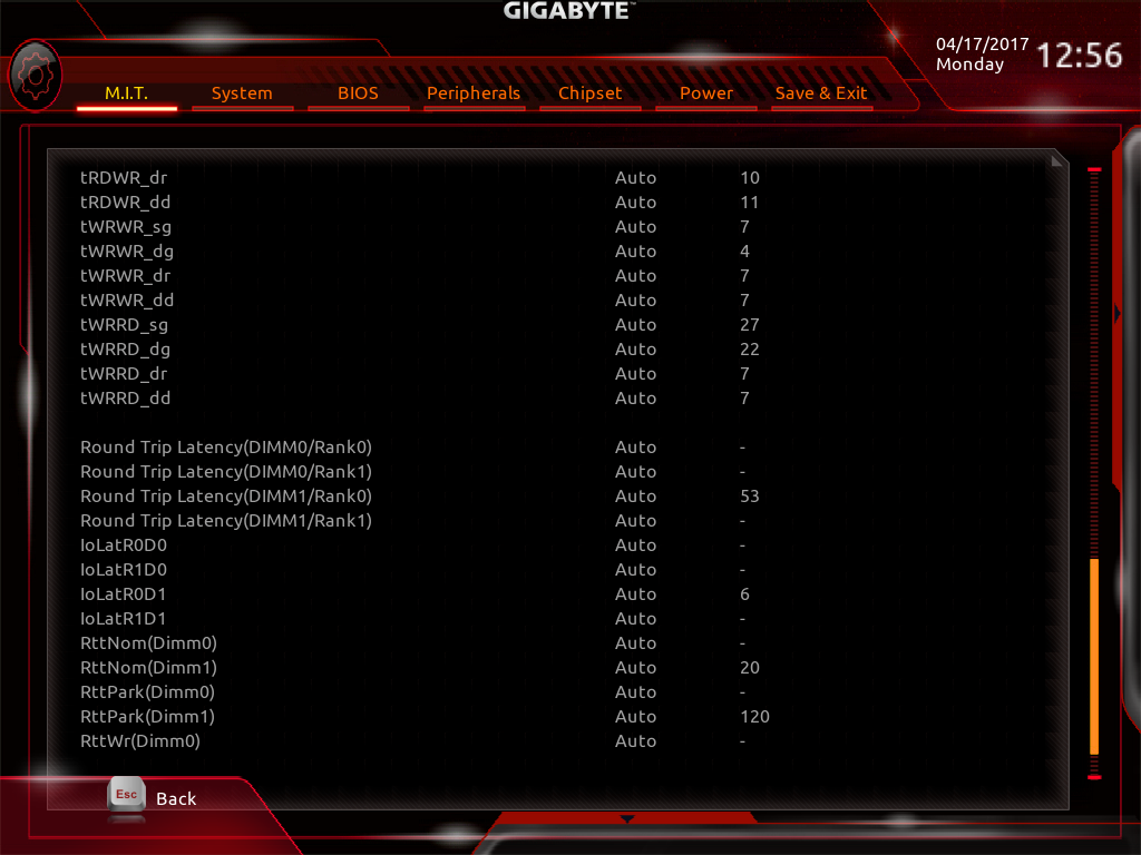 صفحه Advanced DDR OC نیز حاوی پارامترهایی نظیر ضریب فرکانس ماژولهای حافظه RAM، قابلیت فعال سازی پروفایلهای XMP و تایمینگ های اصلی و Advanced برای اورکلاک حافظههای RAM است.
