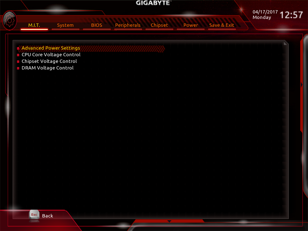 پارامترهای مربوط به مدارات کنترل مصرف انرژی، فرکانس سوئیچینگ مدارات PWM و پروتکشن های در نظر گرفته شده برای CPU، ماژولهای حافظه RAM نیز در پنجره Advanced Power این نرم افزار گنجانده شدهاند.