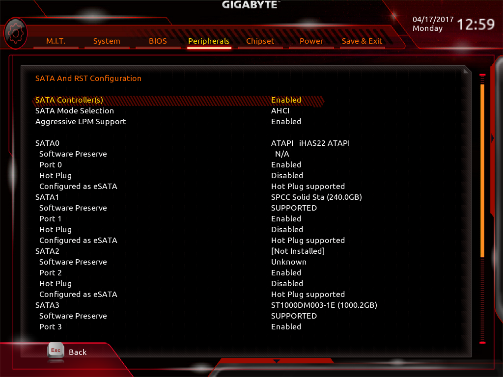در بخش پورتهای مرتبط با تجهیزات ذخیرهسازی 4 پورت مستقل SATA 6Gb/s و 2 پورت SATA-Express 10Gb/s مشاهده میشود که به غیر از دو عدد از پورتهای SATA 6Gb/s همگی از چیپست Intel Z270 منشعب میشوند.