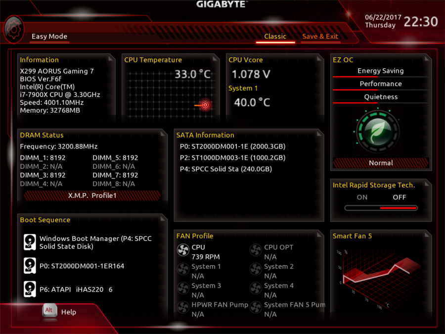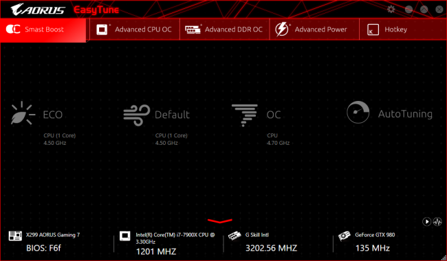 اگر از طرفداران قدیمی مادربردهای کمپانی گیگابایت باشید مسلماً با نرم افزار EasyTune خاطرات زیادی دارید. EasyTune نرمافزاری است تحت ویندوز که با رابط گرافیکی کاربر پسند جهت اورکلاک آسان، سریع و حتی دستی و حرفهای سیستم به کار میرود. همانطور که در تصویر بالا ملاحظه میکنید در صفحه اصلی این نرم افزار این امکان فراهم شده تا پارامترهای مختلف سیستم را برای حالتهای مختلف مصرف بهینه انرژی، عادی، اورکلاک پردازنده و یا شروع فرآیند اورکلاک خودکار تنها با یک کلیک تنظیم کنید. در نوار پایینی نرم افزار نیز فرکانس هسته پردازنده، ماژولهای حافظه RAM و فرکانس هسته GPU بهصورت Real Time نمایش داده میشوند.