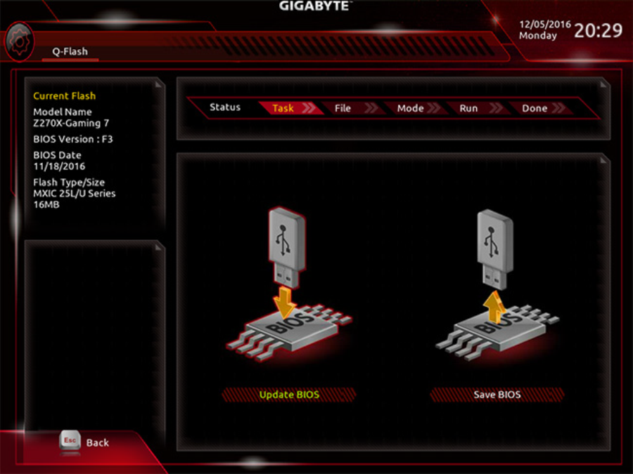 همچنین علاوه بر تنها پورت آبی رنگ USB 3.1 Gen1 تعبیه شده در این پنل یکی از پورتهای USB این بخش سفید رنگ است. این پورت علاوه بر عملکرد عادی یک پورت USB 3.1 Gen1، بهعنوان Q-Flash USB Port نیز عمل میکند. در مادربردهای جدید کمپانی گیگابایت قابلیتی تحت عنوان Q-Flash Plus اضافه شده که بهواسطه آن بهروزرسانی Bios بدون نیاز به فشردن هیچ دکمهای و یا حتی در حالتی که مادربرد فاقد پردازنده و حافظه RAM است نیز میسر شده است. در واقع در زمانی که به هر دلیلی Bios سیستم معیوب شده است و یا پردازنده جدیدی نصب کردهاید و این پردازنده به دلیل بروز نبودن Bios توسط مادربرد پشتیبانی نمیشود و سیستم تصویر نمیدهد، با دانلود کردن آخرین فایل Bios مادربرد و تغییر دادن نام آن به GIGABYTE.BIN میتوانید آن را داخل یک USB Flash Drive با فرمت FAT32/16/12 کپی کرده و آن را به پورت سفید رنگ نام برده متصل کنید. مادربرد در صورتی که به هر دلیلی توسط Bios های فعلی قادر به راه اندازی سیستم نباشد بهصورت خودکار و پس از 15 الی 20 ثانیه به سراغ پورت Q-Flash USB رفته و فرآیند بهروزرسانی Bios شروع میشود. از شروع تا پایان پروسه نام برده یک LED تحت عنوان Q-Flash Plus LED فرآیند نام برده را در حالت چشمک زن گزارش میکند. پس از پایان فرآیند بهروزرسانی Bios نیز سیستم بهصورت خودکار Restart شده و در مرحله بعد تراشه Bios پشتیبان نیز بهروزرسانی میشود.