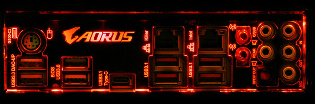 گیگابایت حتی برای پنل پشتی بسیار زیبای این مادربرد نیز نورپردازی RGB در نظر گرفته است.