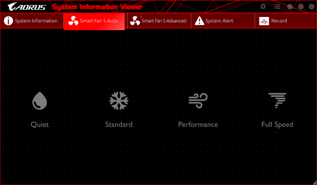 در بخش Smart FAN Auto این امکان فراهم شده تا توسط تنظیمات از پیش تعیین شده در 4 حالت مختلف بیصدا، استاندارد، سریع و حداکثر سرعت، چرخش تمامی فنهایی که به کانکتورهای فن مادربرد متصل شده است را کنترل کنید.