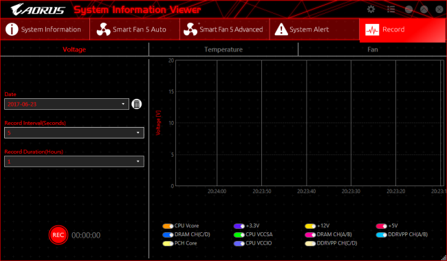 بخش Record نیز تمامی فعل و انفعالات رخ داده در تمامی پارامترهای ولتاژی، حرارتی و سرعت چرخش فنها را در یک فایل مجزا ذخیره کرده تا کاربر یا کاربران سیستم بهراحتی توانایی بازبینی این اطلاعات را داشته باشند.