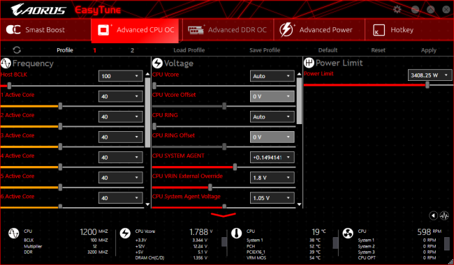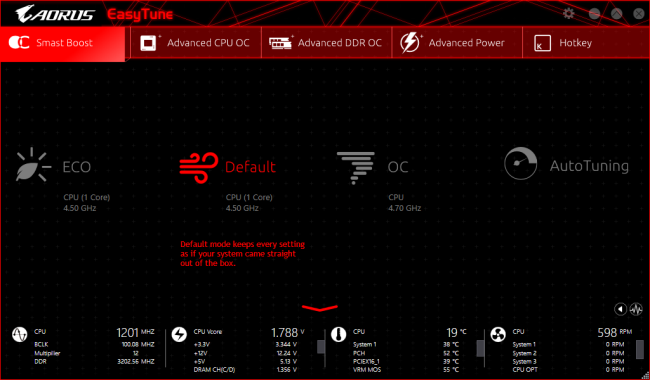 همچنین نوار بخش پایینی این نرم افزار قابلیت مانیتورینگ ولتاژ، حرارت و حتی سرعت چرخش فنهای سیستم را نیز دارا میباشد.