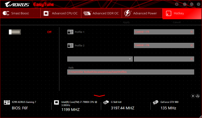 تمامی تنظیمات موجود در این نرم افزار قابلیت ذخیره در پروفایلهای مجزا را دارا میباشند. در نتیجه کاربر میتواند چندین پروفایل مختلف برای استفاده در شرایط مختلف مثل، گیمینگ، مرور وب و ... ذخیره کند. در بخش Hotkey نرم افزار EasyTune این امکان فراهم شده تا کاربر با تعیین چند Hotkey خاص در هر لحظه و هر زمانی که اراده کند تنها با فشردن کلیدهای ترکیبی تعیین شده پروفایل تنظیمات خود را در سریعترین زمان ممکن فراخوانی کند.