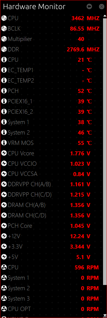 یکی دیگر از امکانات بسیار کاربردی نسخه جدید EasyTune پنجره مانیتورینگ این نرم افزار است که در یک قاب و بهصورت Real Time تقریباً تمامی پارامترهای مهم فرکانسی، ولتاژی، حرارتی و سرعت چرخش فنها را به کاربر نمایش میدهد.