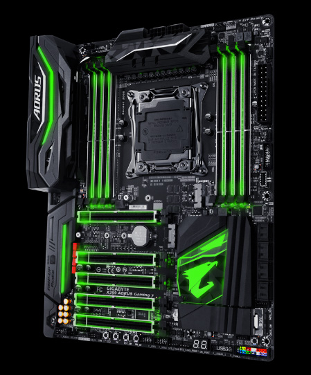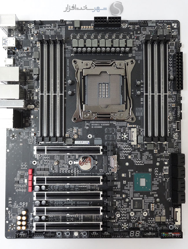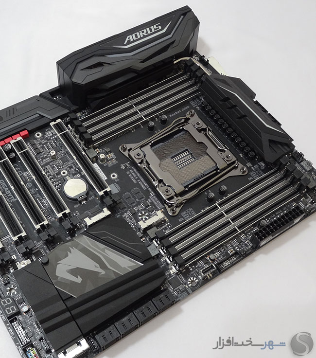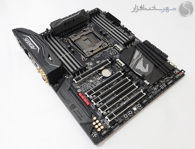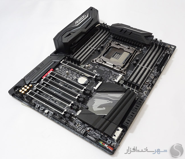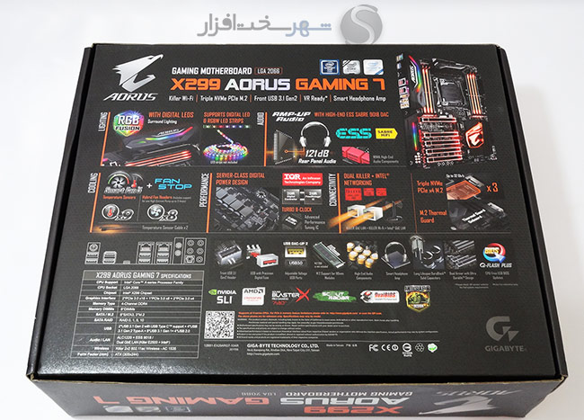 اما برویم سراغ اصل مطلب! مادربرد GIGABYTE X299 AORUS Gaming 7 که با قیمت جهانی حدوداً 400$ روانه بازار شده است در حال حاضر یکی از زیباترین و خوش ساخت ترین مادربردهای مبتنی بر چیپست Intel X299 محسوب میشود. همچنین در چیپست Intel X299 منابع بنیادی مانند گذرگاههای PCIe، پورتهای USB و شاه راه ارتباط با پردازنده ارتقاء پیدا کرده که هر یک نقش مهمی در افزایش امکانات و کارایی این پلتفرم دارند.