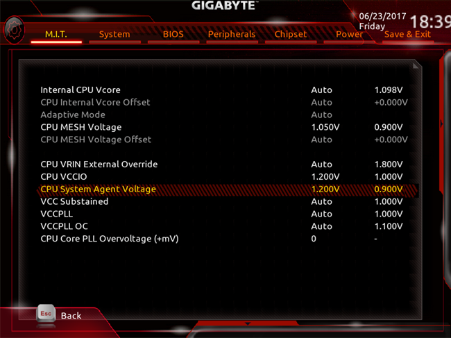 اما این پایان کار نبود. یکی از برجستهترین ویژگیهایی که سازندگان مادربردهای مبتنی بر چیپست Intel X299 بر روی آن مانور میدهند پشتیبانی آنها از ماژولهای RAM اورکلاک شده با فرکانسهای بیش از 4000MHz است! ما نیز چون ماژولهای نسبتاً خوبی در اختیار داشتیم تصمیم گرفتیم تا پتانسیل این پلتفرم را در اورکلاک ماژولهای RAM نیز بسنجیم.برای همین منظور ابتدا طبق تصاویر بالا در Bios مقادیر ولتاژ DRAM Voltage، VCCSA، VCCIO، DDRVPP و DRAM Termination را تا حد کاملاً ایمن افزایش دادیم. درنهایت نیز در فرکانس و تایمینگ 3800MHz – 36-14-14-16 به مرز ناپایداری رسیدیم.