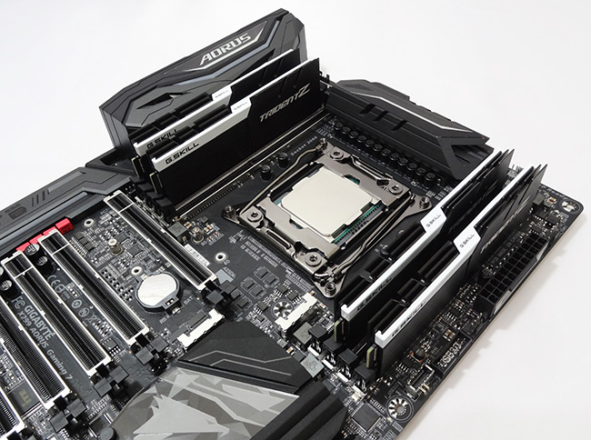 این مدل بهواسطه هشت DIMM حافظه تعبیه شده قابلیت پشتیبانی از 128GB (512GB در صورت نصب ماژولهای از نوع Registered DIMMs) حافظه DDR4 چهار کاناله Non-ECC با فرکانس کاری 2400/2666MHz/2133 را در حالت استاندارد دارا است. البته این مادربرد با استفاده از پروفایلهای استاندارد XMP 3.0 و بهصورت اورکلاک شده حتی تستهای آزمایشگاهی ماژولهای با فرکانس بیش از 4400MHz را نیز با موفقیت پشت سر گذاشته است.