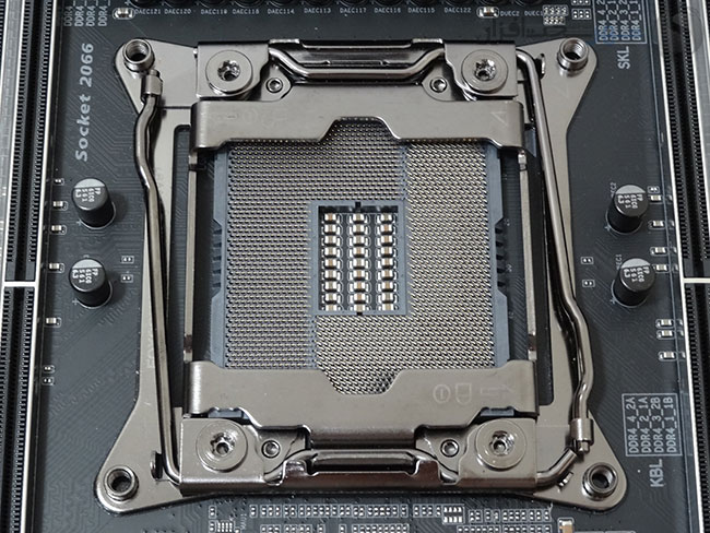 در تصویر بالا نیز سوکت جدید LGA 2066 اینتل را مشاهده میکنید. خبر خوب در مورد این سوکت که با اسم رمز R4 نیز شناخته میشود، سازگاری کولرهای نسل قبل LGA 2011 با سوکت جدید است.