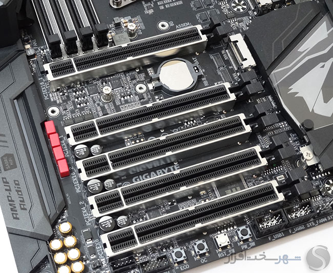 اما در آن روی سکه، گیگابایت در پیکربندی اسلات های توسعه PCIe X16 این مادربرد به هیچ وجه عملکرد خوبی نداشته است! همانطور که در بخش تحلیل عملکرد اسلات های توسعه به آن اشاره کردیم در صورت نصب پردازندههای ارزان قیمت مجهز به 16Lane PCIe این پلتفرم بر روی این مادربرد، حتی در صورت استفاده از یک کارت گرافیک بر روی این مادربرد، اسلات PCIe 3.0 مورد نظر با سرعت عملیاتی X8 فعالیت خواهد!