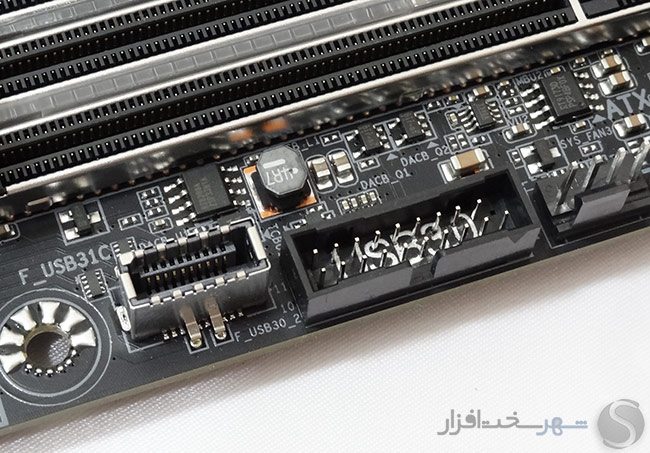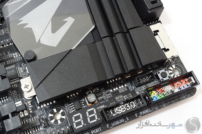 همچنین این برای اولین بار است که گیگابایت در مادربردهای سری جدید خود از کانکتور USB 3.1 Gen2 10Gb/s جهت اتصال به پنل جلویی کیس و یا براکت های جانبی استفاده کرده است. در کنار این کانکتور و در بخش پایینی PCB نیز دو کانکتور 19-Pin USB 3.1 Gen1 5Gb/s نیز تعبیه شده که هر یک دو پورت USB 3.0 جانبی دیگر را برای این مادربرد فراهم کردهاند.