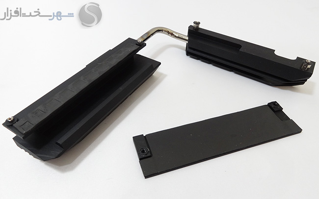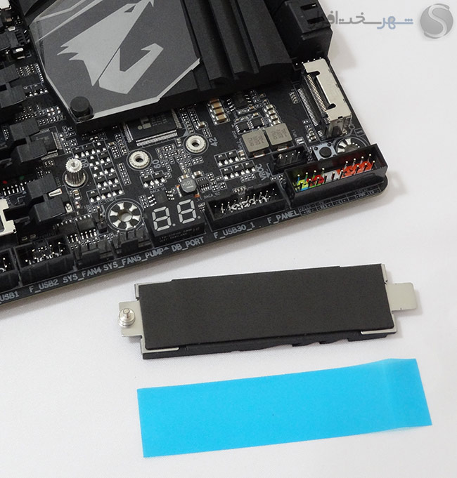 همانطور که در تصویر بالا مشاهده میکنید این هیتسینک بهواسطه یک پد حرارتی مخصوص بر روی تجهیزات ذخیره سازی از نوع M.2 نصب میشود و به گفته گیگابایت نقش مهمی در کاهش حرارت و جلوگیری از کاهش کارایی تجهیزات رده بالای سازگار با این رابط دارد.