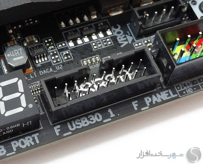 علاوه بر این همانطور که اشاره شد 2 عدد از پورتهای USB 3.1 Gen1 این پنل که با رنگ زرد از سایر پورتها متمایز شدهاند به همراه پورتهای USB 3.0 ارائه شده توسط کانکتورهای تعبیه شده بر روی PCB دارای تغذیه با ولتاژ 5V تقویت شده با قابلیت تنظیم دستی ولتاژ (حداکثر 0.3V+ بیشتر از مقدار نامی) هستند و حتی در جریانهای بالا نیز دچار افت ولتاژ و نویز نمیشوند. این قابلیت که کمپانی سازنده آن را USB DAC-UP 2 نامیده است برای اتصال دستگاههای پرمصرف و مبدلهای Digital-to-Analog صوتی کاربرد دارد و در عمل باعث تثبیت هر چه بیشتر ولتاژ و افزایش کیفیت ادوات صوتی نامبرده خواهد شد. علاوه بر این مشکلات ناشی از قطع وصل کیبورد و ماوس با سیمهای بلند نیز در این مادربرد وجود نخواهد داشت.