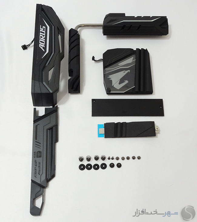البته طبق مشخصات درج شده در دفترچه راهنما میبایست یک جفت بست کابل با لوگو AORUS نیز در جعبه موجود باشد که طبق تصویر بالا آنها را مشاهده نکردیم.