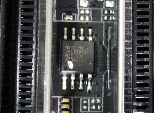 همچنین در تصویر بالا در کانکتور مادگی MMCX تعبیه شده بر روی ماژول Wi-Fi + Bluetooth 4.1 این مادربرد را نیز از نمای نزدیک مشاهده میکنید.