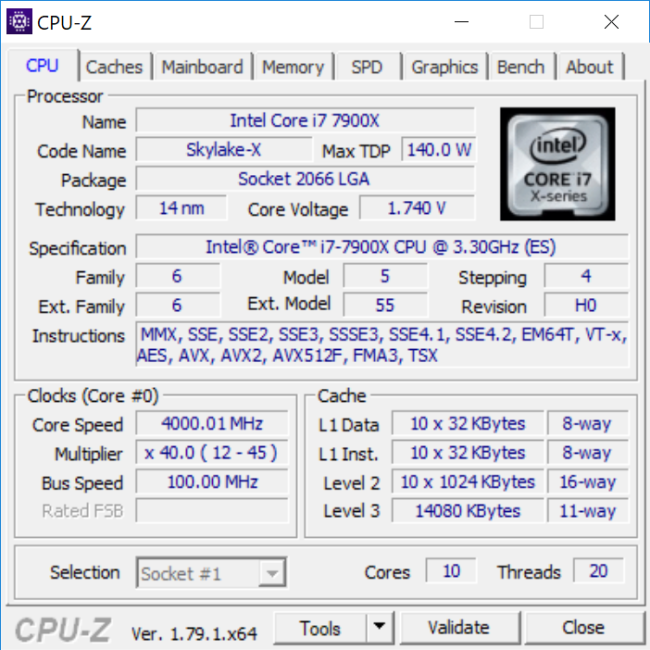 همچنین کنترلر حافظه نیز در پردازندههای Skylake-X بهینه سازی شده و قابلیت پشتیبانی از حافظههای 4 کاناله DDR4 با فرکانس حداکثر 2666MHz در حالت استاندارد نیز برای این نسل فراهم شده است؛ اما اینتل در مدل Intel Core i9 7900X سنت شکنی کرده و آن را تنها به 13.75MB L3 Cache مجهز کرده است. این در حالی است که Intel Core i7 6950X دارای 25MB حافظه L3 Cache بود. همین عامل باعث شده تا این پردازنده 140W بیش از 743$ از مدل مشابه نسل قبل خود یعنی Intel Core i7 6950X ارزانتر باشد.