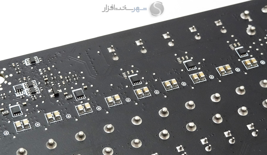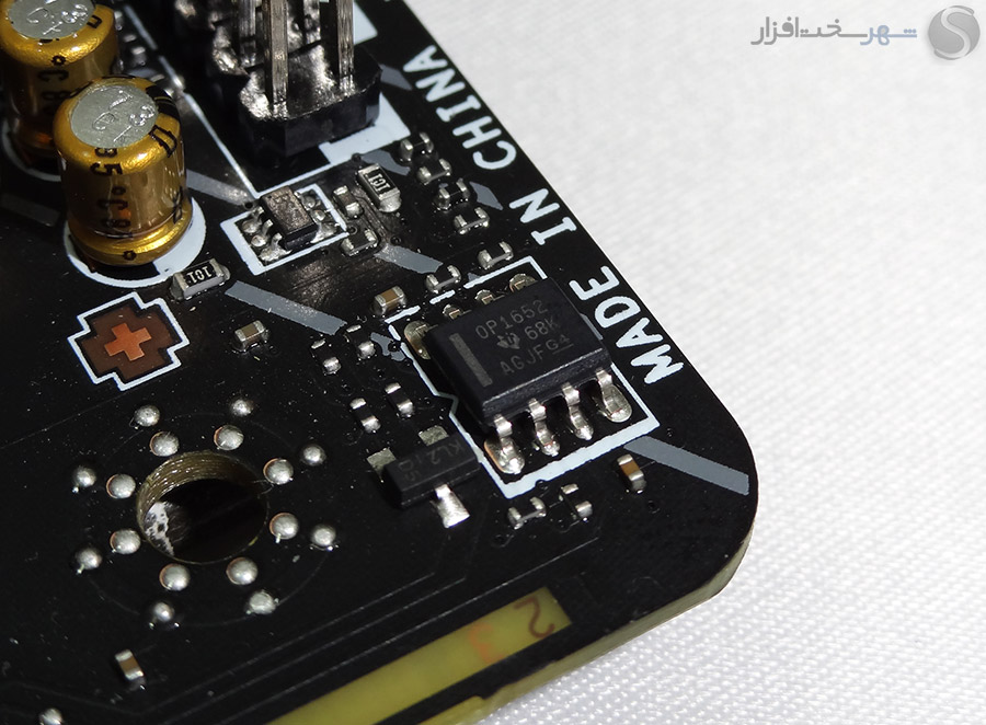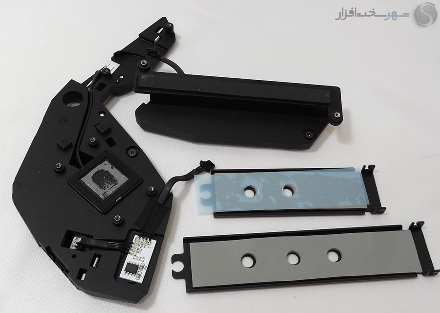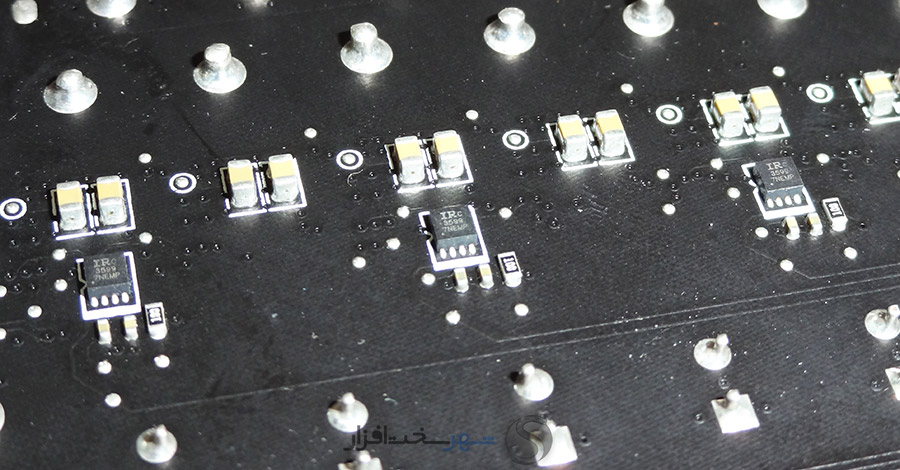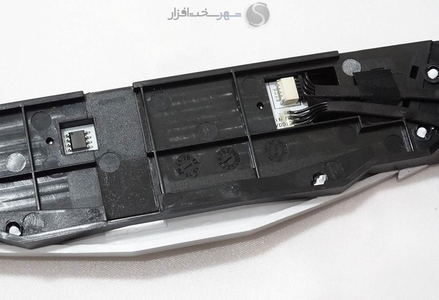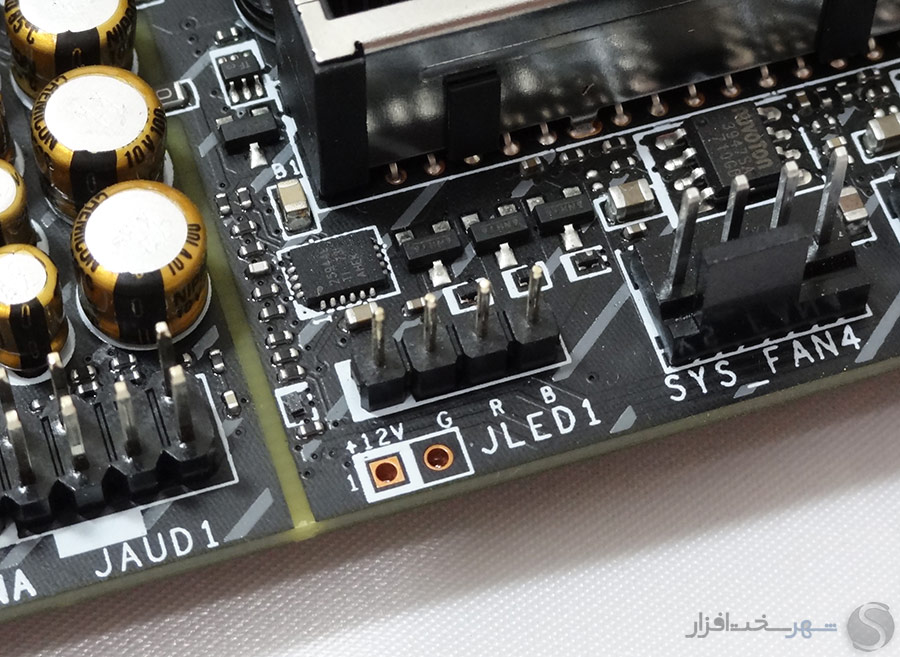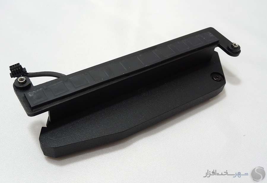 در تصویر بالا نیز اتصالات و تراشه تعمیم دهنده سیگنال کنترل RGB تعبیه شده بر روی یکی از کاورهای پلاستیکی این مادربرد را مشاهده میکنید.