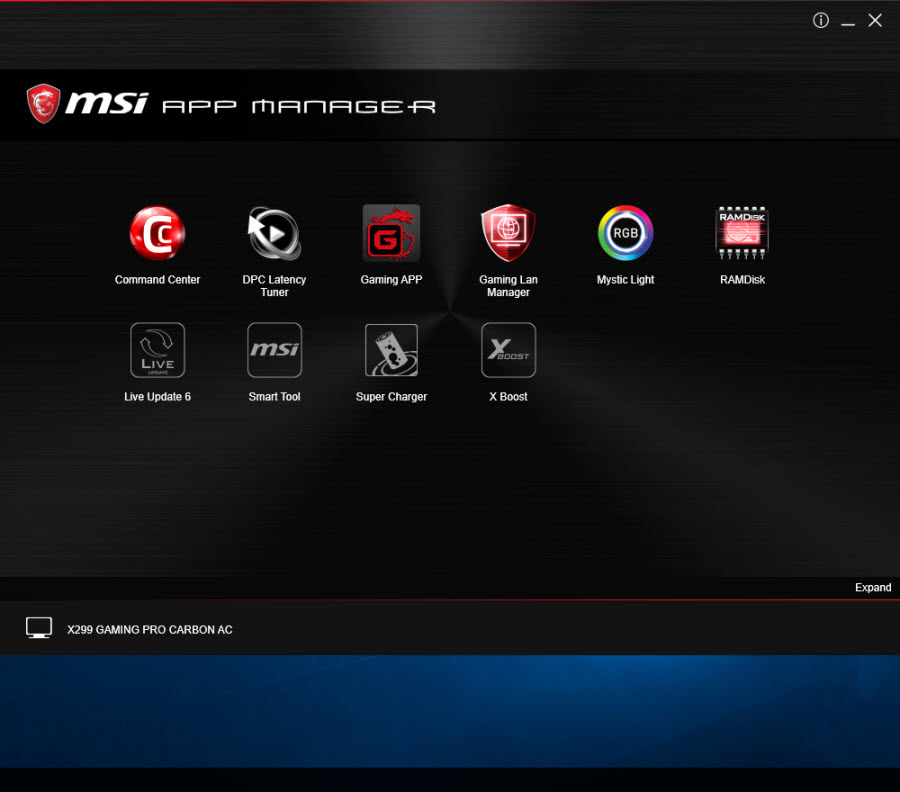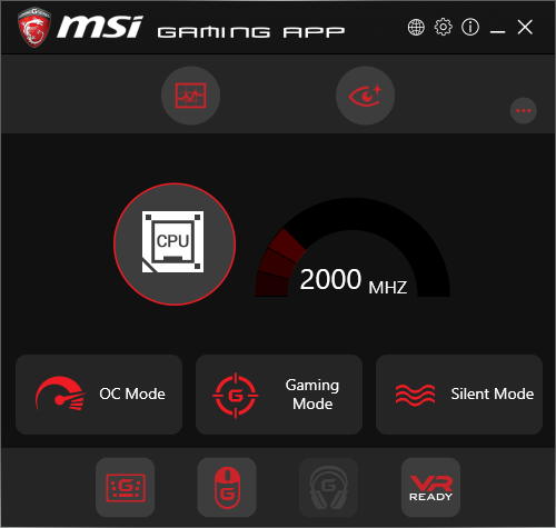 در نرم افزار Gaming APP قابلیت تنظیم پارامترهای مختلف سیستم در 3 حالت OC Mode، Gaming Mode و Silent Mode فراهم شده است. همچنین نرم افزار کنترل نورپردازی، مانیتورینگ پارامترهای مختلف سیستم، کنترل تجهیزات VR و ... نیز در این بخش پیش بینی شده است.