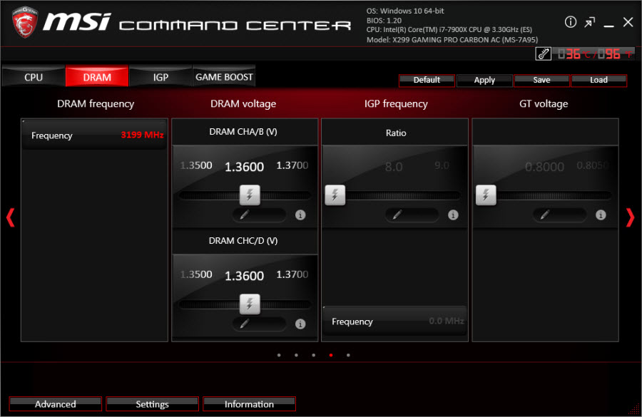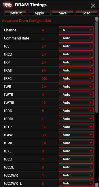 در تب DRAM امکان تغییر ولتاژ و ضریب فرکانس ماژولهای حافظه فراهم شده است. همچنین بر تمامی تایمینگ های اصلی و پیشرفته ماژولهای حافظه نیز کنترل کامل خواهید داشت.