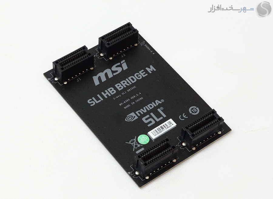 در تصویر بالا پل بسیار ارزشمند و کمیاب SLI-HB موجود در محتویات جعبه این مادربرد را ملاحظه میکنید. پل SLI-HB در افزایش بازدهی پیکربندی SLI کارتهای گرافیک ردهبالای GeForce GTX 1070/1080 نقش مهمی را ایفا میکند. ناگفته نماند لوگو دراگون چاپ شده بر روی آن ظاهر دلچسبتری به این برد بخشیده است.