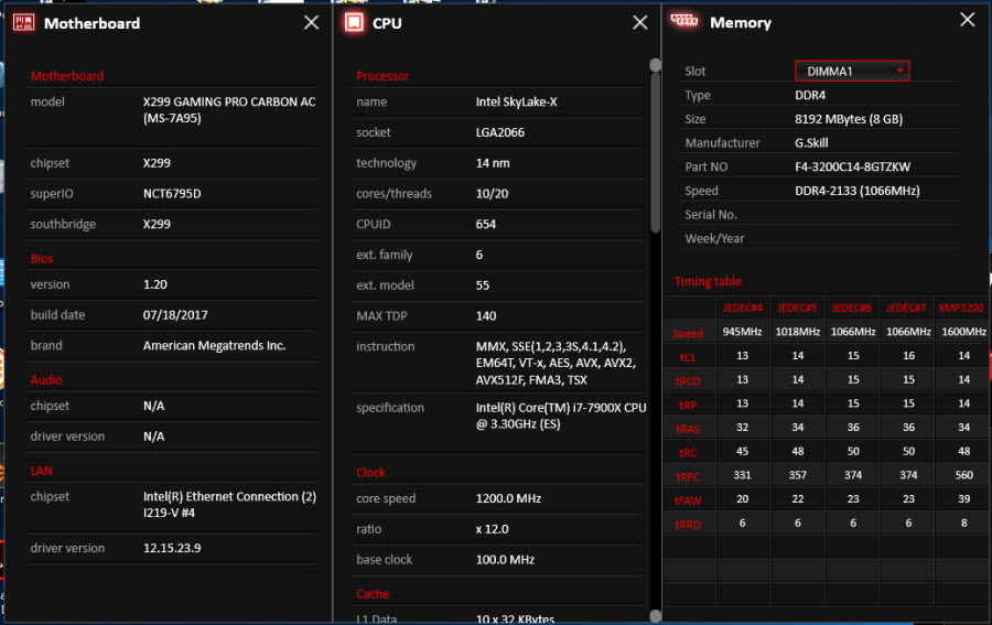 مشخصات کامل پردازنده، مادربرد و ماژولهای RAM سیستم نیز را میتوانید در بخش Info به صورت کامل مشاهده کنید.