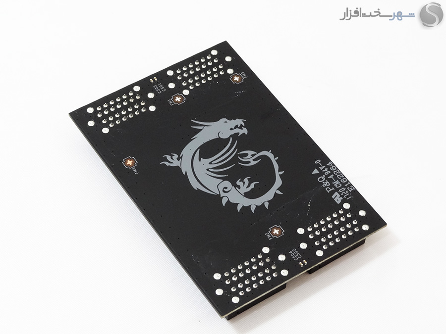 در تصویر بالا چهره برهنه این مادربرد را مشاهده میکنید. همانطور که ملاحظه میکنید تراکم نسبتاً بالای قطعات همواره در مادربردهای با سایز ATX این پلتفرم مشهود است. البته این تراکم در نیم تنه بالایی بیشتر و در بخش پایینی تا حدودی کمتر به نظر میرسد. با این حال MSI فضای خالی مناسبی در اطراف روزنههای در نظر گرفته شده برای پیچ کردن مادربرد بر روی کیس پیش بینی کرده تا مشکلات ناشی از آسیب دیدن PCB در حین اسمبل را به حداقل ممکن برساند.