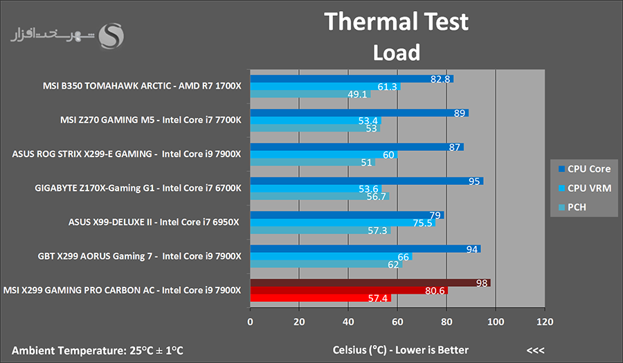 همان طور که در بررسیهای قبلی نیز به آن اشاره کردیم در کل با پلتفرمی پرمصرف و البته تا حدودی داغ روبرو هستیم؛ اما در این مادربرد به دلیل دلایل ذکر شده در تستهای مدیریت مصرف انرژی و البته هیت سینک نسبتاً کوچک در نظر گرفته شده برای بخش مدار رگولاتور ولتاژ پردازنده شاهد ثبت نتیجهای نامید کننده از این مادربرد هستیم. اکیداً توصیه میکنیم در صورتی که قصد خرید این مادربرد را دارید حتماً از کیس های مجهز به تهویه هوا استاندارد و البته با فضای داخلی بزرگ استفاده کنید. از سوی دیگر امیدواریم MSI در نسخههای آتی Bios با رعایت بیشتر P-State های اینتل تا حدودی این ضعف را پوشش دهد.