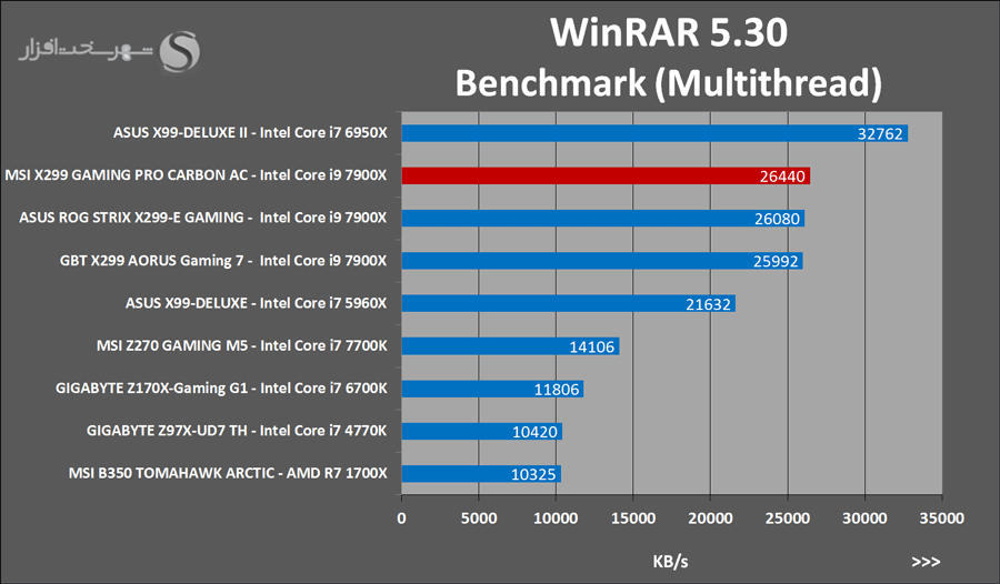 فرآیند Zip و یا Unzip کردن اطلاعات همیشه جزو یکی از کاربردیترین و در عین حال معمولترین کارهایی است که استفاده کنندگان از کامپیوترهای شخصی در طول روز با آن سر و کار دارند. از جمله معروفترین و شناخته شده ترین نرمافزارهای این امر WinRAR و 7-Zip هست که همواره خود را همگام با ارائه آخرین فنّاوریهای سختافزاری بروز نگاه میدارد تا بهترین کارایی ممکن را از خود ارائه دهد. این نرم افزارها دارای یک بخش Benchmark Tool مستقل میباشند که نتایج به دست آمده در این قسمت در نمودارهای زیر درج شده است.تستهای wPrime 32M و SUPER PI 1M