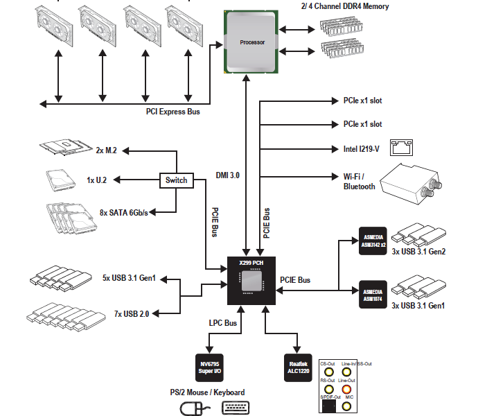 همانند اکثر مادربردهای رده بالای مبتنی بر چیپست Intel X299 با سایز ATX، به دلیل زیرساختهای ارتباطی و امکانات بالای متعدد در نظر گرفته شده برای این نوع مادربردها، تراکم قطعات و کامپوننت های تعبیه شده بر روی PCB نسبتاً بالا است.