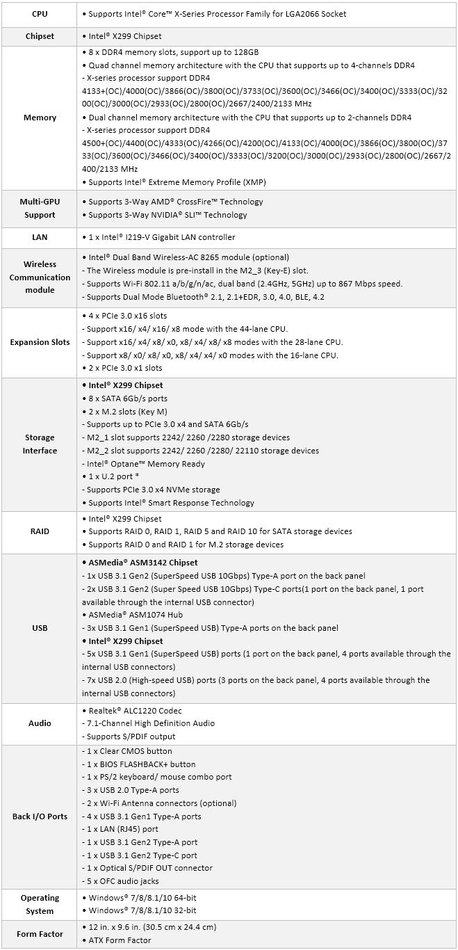 - بهرهمند از 2 اسلات Ultra-Fast M.2 PCIe Gen3 x4 32Gb/s و یک درگاه U.2 32 Gb/s به همراه پشتیبانی از Intel® Optane™ Memory