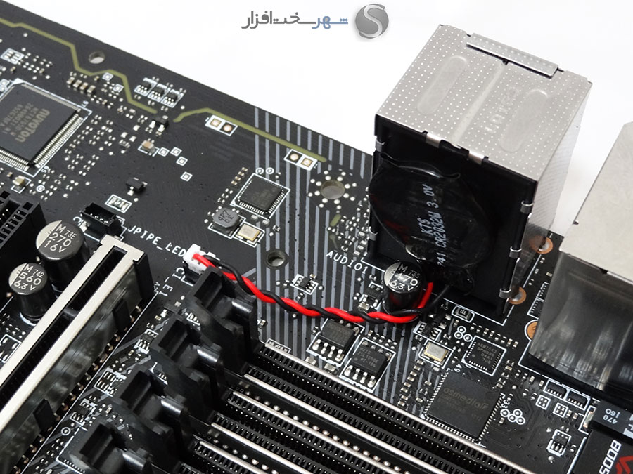 - پنل فلزی و مشکی رنگ پشت مادربرد