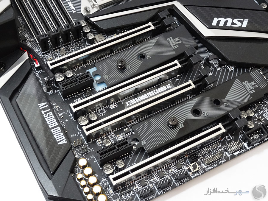 همچنین از نظر ما MSI در توزیع امکانات برای این مادربرد 350 دلاری هوشمندانه عمل کرده است. برخورداری از 2 درگاه M.2 X4 32Gb/s در کنار یک پورت U.2 32Gb/s به همراه پورتهای متعدد USB 3.1 Gen2 10Gb/s، سیستم صوتی AUDIO BOOST 4 مجهز به پردازش نرمافزاری توسط NAHIMIC 2+ و تجهیز به درگاههای مدرن و پرسرعت سیمی و بیسیم 802.11 ac 867Mb/s از جمله امکانات و قابلیتهایی هستند که این مادربرد را حسابی در معرض توجه قرار میدهند.
