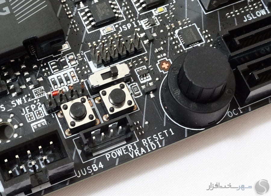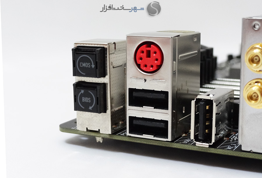 علاوه بر پورتهای نام برده دو عدد DIP-Switch تحت عنوان Clear CMOS و BIOS Flashback نیز در کنار پورتهای GAMING تعبیه شده که سوئیچ Clear CMOS در مواقع لازم جهت بازیابی تنظیمات پیش فرض Bios به کار میرود.