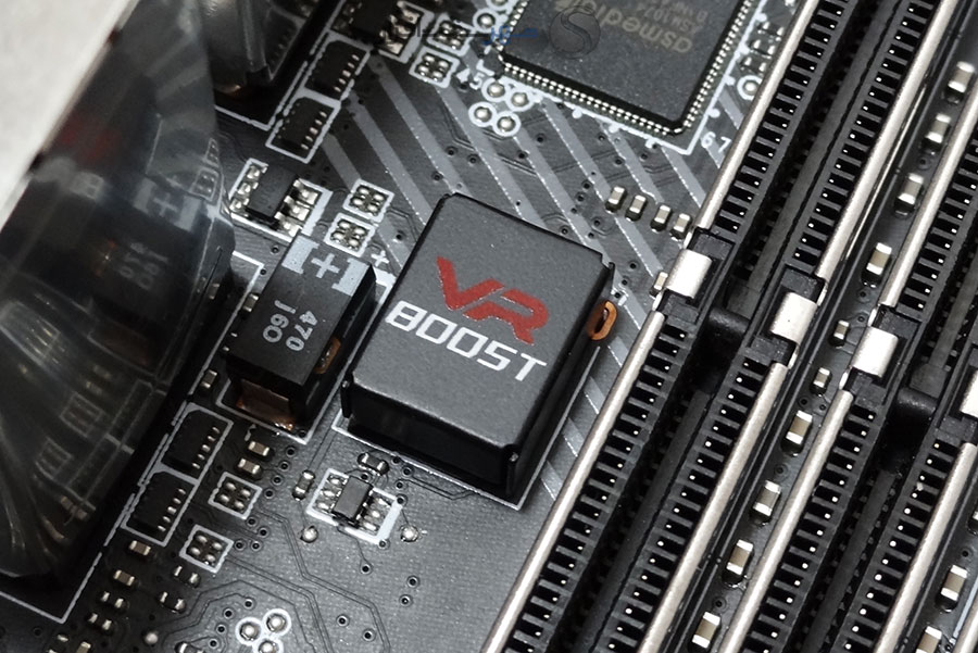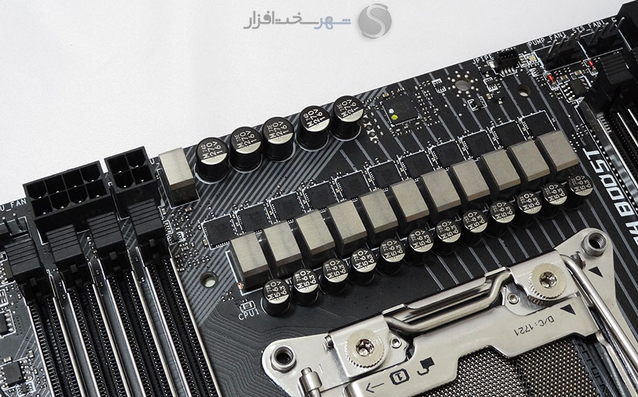 - برخورداری از مدار رگولاتور ولتاژ دیجیتال مدرن 10+1 Phase متشکل از خازنهای جامد ژاپنی Dark CAP و چوکهای خنک و پربازده سری TITANIUM