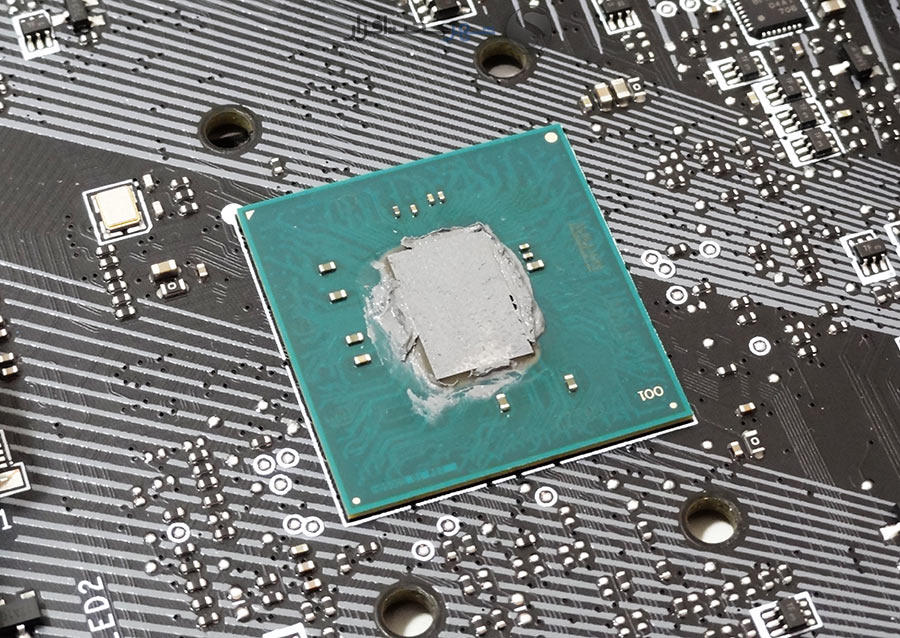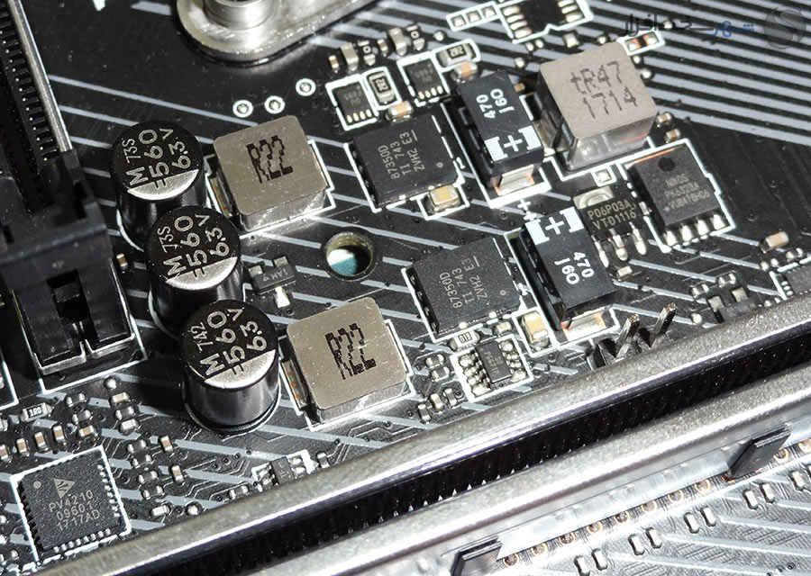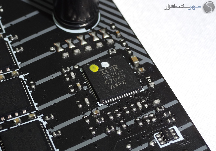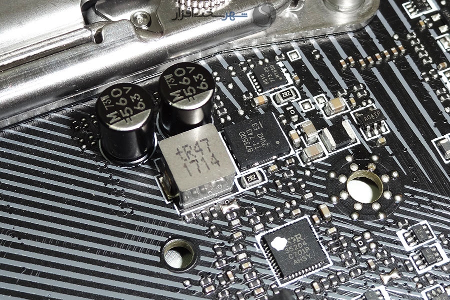 بهواسطه فرآیند تولید تمام خودکار، دیگر مادربردی را نمیتوان پیدا کرد که کیفیت ساخت و لحیم کاری بیکیفیتی داشته باشد. این مادربرد نیز از این قاعده مستثنا نیست. همانطور که در تصویر بالا ملاحظه میکنید هیت سینکها و محافظهای پلاستیکی تعبیه شده بر روی PCB بهواسطه 12 پیچ معمولی و فنر بر روی این برد نصب میشوند. همچنین به جهت تثبیت هر چه بیشتر هیت سینک مدار رگولاتور ولتاژ پردازنده و جذب حرارت منتقل شده به پشت PCB توسط این بخش، هیچ نوع تسمه فلزی در پشت مدار VRM تعبیه نشده است.