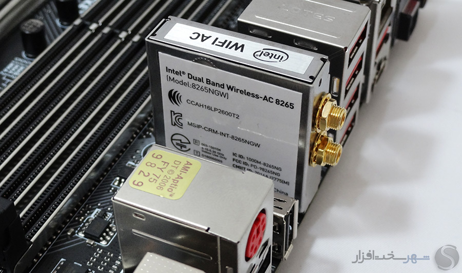 همانطور که اشاره شد این مادربرد نیز همانند سایر مدلهای با پسوند AC کمپانی MSI دارای یک ماژول بیسیم مجهز به Wi-Fi از نوع 802.11 a/b/g/n/ac، Bluetooth 4.2 و حداکثر سرعت تبادل اطلاعات 867 Mbps میباشد. برای این ماژول بیسیم دو آنتن 2T2R با قابلیت تنظیم 90 درجهای زاویه و مجهز به کانکتورهای MMCX در نظر گرفته شده است. آنتنهایی که در مقایسه با مدلهای مشابه بسیار بزرگ و جاگیر هستند.