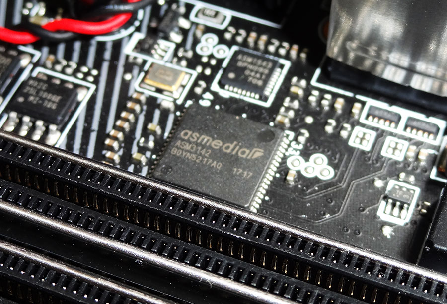 یکی از امکانات خاص این مدل همراه داشتن کانکتور مخصوص USB 3.1 Gen2 10Gb/s برای اتصال پورتهای USB 3.1 Type-A/C پنل جلویی کیس به این مادربرد است. کانکتور 19Pin دوم USB 3.1 Gen1 این مادربرد نیز در سمت راست این کانکتور تعبیه شده است.