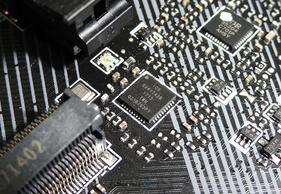 یکی از نقاط قوت این مادربرد استفاده از دو لایه کاملاً مجزا GND منشعب شده از دولایه مختلف از PCB در حفرههای نصب پیچ است. این قابلیت تحمل مادربرد را در تخلیه بارهای الکترواستاتیک بهمراتب افزایش داده و مانع از معیوب شدن مادربرد در بدترین شرایط ممکن میشود.