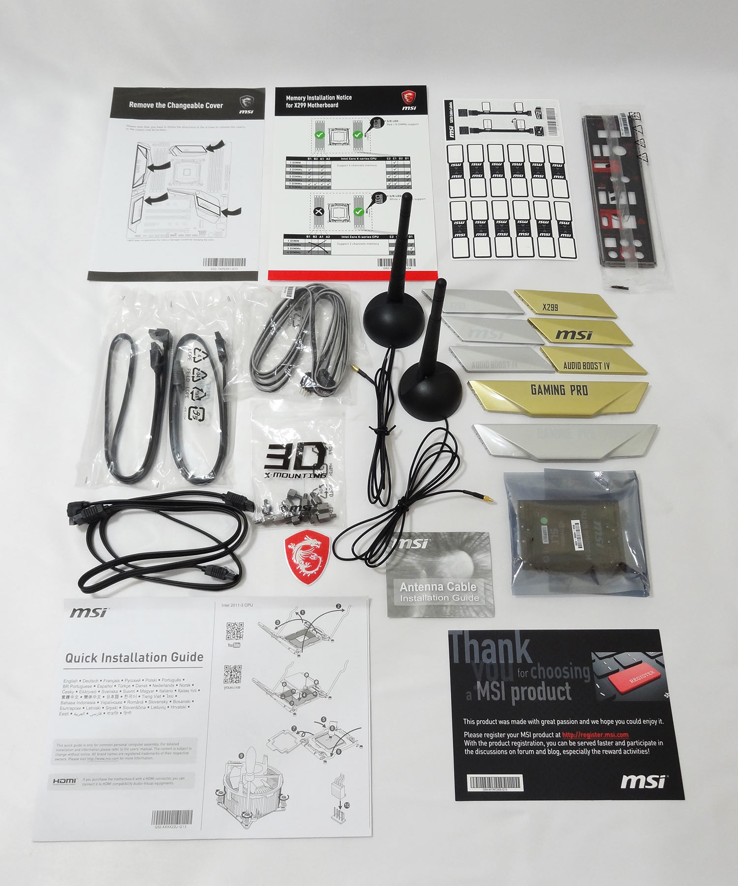 علاوه بر موارد فوق لوگوهای مربوط به چیپست و پردازندههای نسل جدید اینتل، به همراه نشانهای مرتبط با پشتیبانی این مادربرد از واقعیت مجازی (VR)، نورپردازی با RGB LED تحت عنوان MYSTIC LIGHT و لوگو 5 ستاره GAMING مادربردهای MSI که خبر از ذات کاملاً گیمینگ این مادربرد میدهد سایر مندرجات روی این جعبه را تشکیل میدهند.