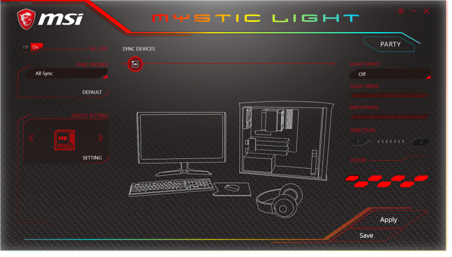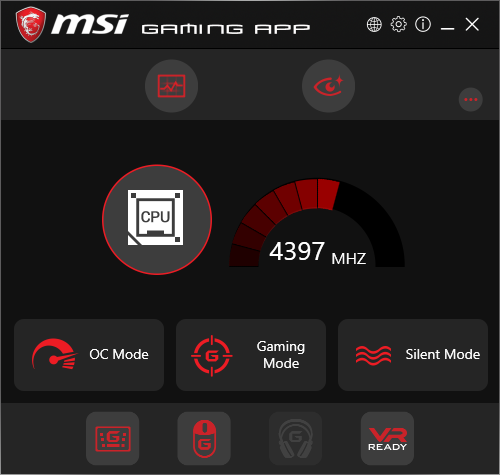در نرم افزار Gaming APP قابلیت تنظیم پارامترهای مختلف سیستم در 3 حالت OC Mode، Gaming Mode و Silent Mode فراهم شده است. همچنین نرم افزار کنترل نورپردازی، مانیتورینگ پارامترهای مختلف سیستم، کنترل تجهیزات VR و ... نیز در این بخش پیش بینی شده است.