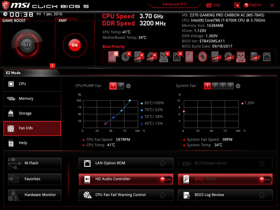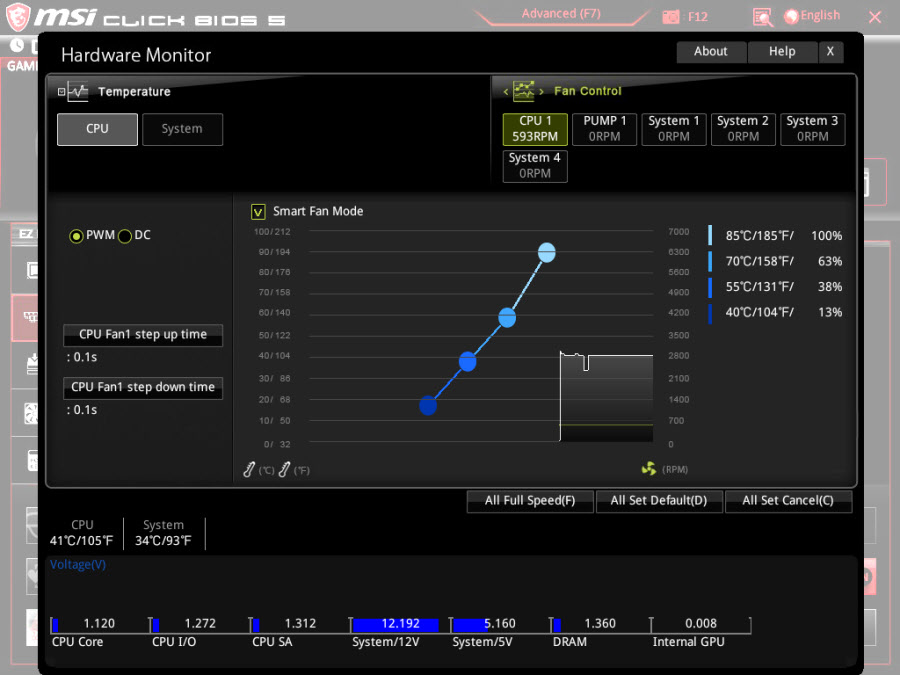 در بخش FAN نیز این امکان فراهم شده تا سرعت چرخش تمامی فنهای متصل به مادربرد را بهصورت دستی و یا با تعیین پروفایلهای مختلف تنظیم کنید.