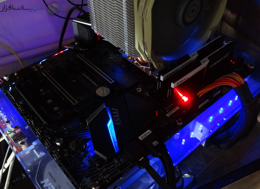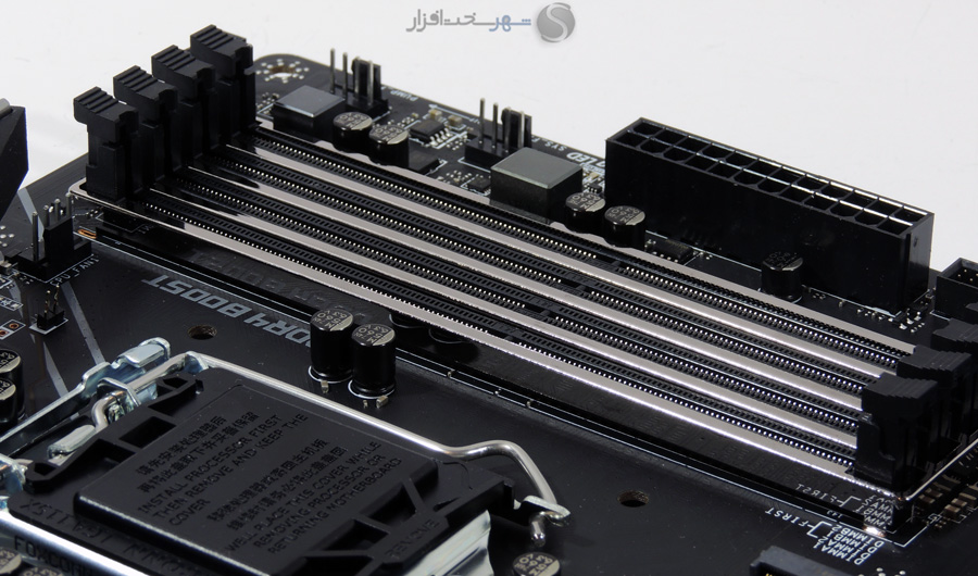 شاید ذکر این نکته ضروری باشد که یکی از فاکتورهای طراحی DDR4 Boost و افزایش کارایی ماژولهای حافظه، نزدیکتر کردن مدار حافظه و پردازنده است؛ جدای از افزایش کارایی که جنبه مثبت این تکنولوژی است، این نزدیکتر شدن باعث برخورد ماژولهای حافظهی ما که چندان بلند هم نیستند (GSkill TridentZ) در اسلات اول DIMM، با خنککننده پردازنده شد که دقت بیشتری در انتخاب خنککننده پردازنده از سوی کاربر میطلبد.