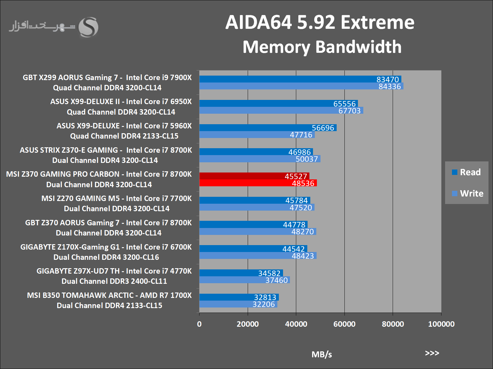 تست پهنای باند و Latency حافظه توسط نرمافزار AIDA64